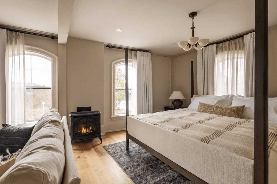 Nestled in the heart of the Headwaters region, this historic establishment offers an ideal countryside escape for corporate events. With five spacious suites, including two two-bedroom suites, each space is equipped with kitchenettes and living and dining areas, fostering an environment conducive to collaboration and creativity. Guests can rejuvenate in an intimate Nordic spa, reserved for guests, where soothing treatments and Canadian skincare products are available. Comfort is paramount, with organic cotton sheets and high-quality mattresses ensuring restful nights. Carefully selected breakfast options allow guests to start their day at their own pace. For relaxation after meetings, luxurious steam showers and a private infrared sauna are available. This venue combines historical charm with modern comfort, creating a unique atmosphere for businesses looking to blend work and wellness.